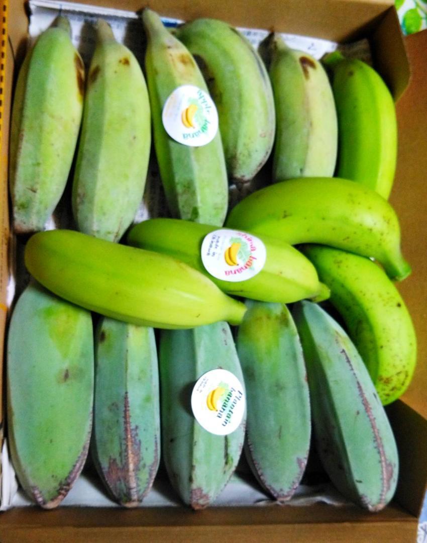 バナナは、青切りの状態の物を お送りさせて頂きます。 黄色く、黒っぽい状態に 追熟させてからお召し上がり下さい。