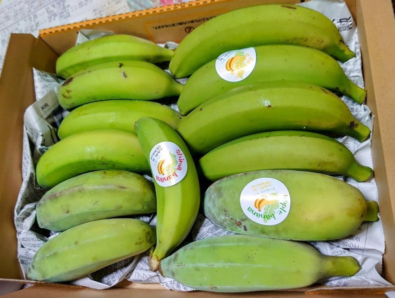 バナナは、青切りの状態の物を お送りさせて頂きます。 黄色く、黒っぽい状態に 追熟させてからお召し上がり下さい。 追熟の仕方: ビニール袋に入れて、新聞紙などで包んで温かい場所で保管して下さい。 または、りんごなどと一緒に保管されますと、追熟が早まります。 黒っぽくなりましたら、糖度も増して美味しくお召し上がりになれますが、お好みで調整して下さい。